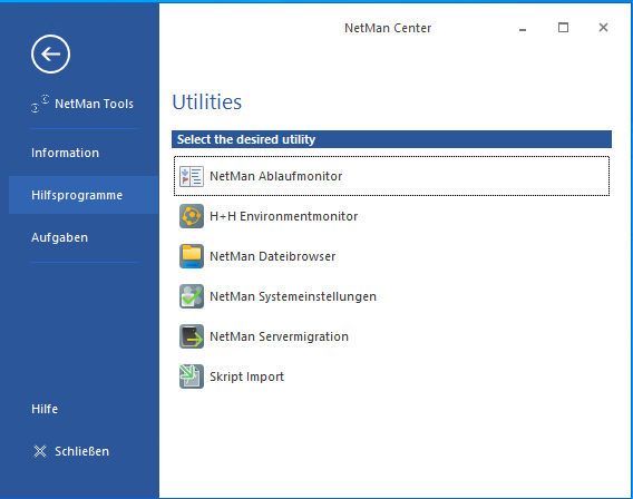 Das NetMan Center ist das zentrale Systemprogramm von NetMan Desktop Manager.